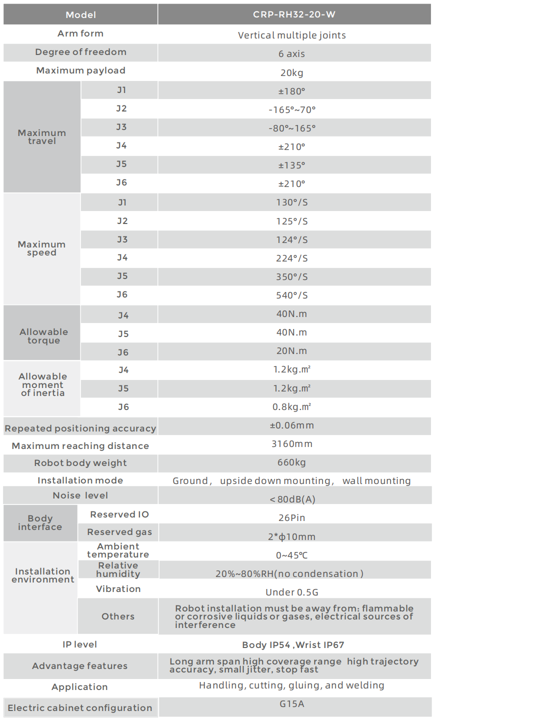 Built - in cable, gas pipe, through the center of the forearm and wrist set hollow part, from the robot base to the end of the wrist built - in cable and gas pipe, more convenient for users, improve the efficiency of work.