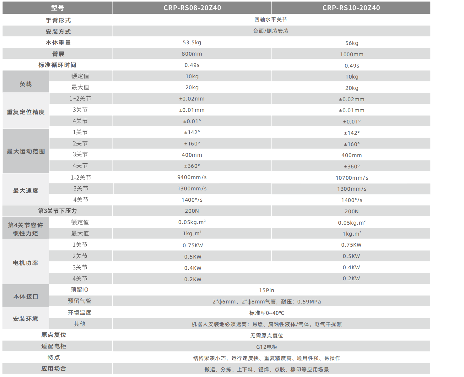 ? 可提供1000毫米臂長規格,最高有效負載可達20kg,額定有效負載為10kg。