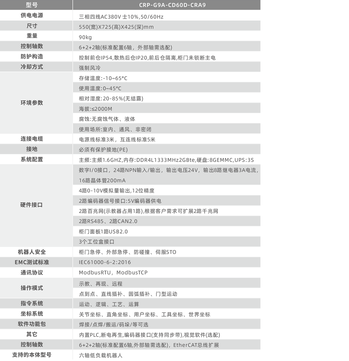采用進口強制型斷開繼電器,對外提供雙回路急停。任意急停被按下時,強電回路和伺服單元同時緊急處理,強行停止機器人動作從而實現安全急停。