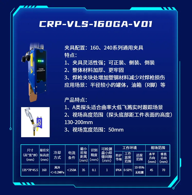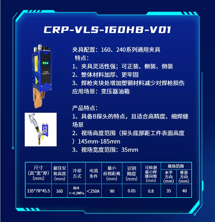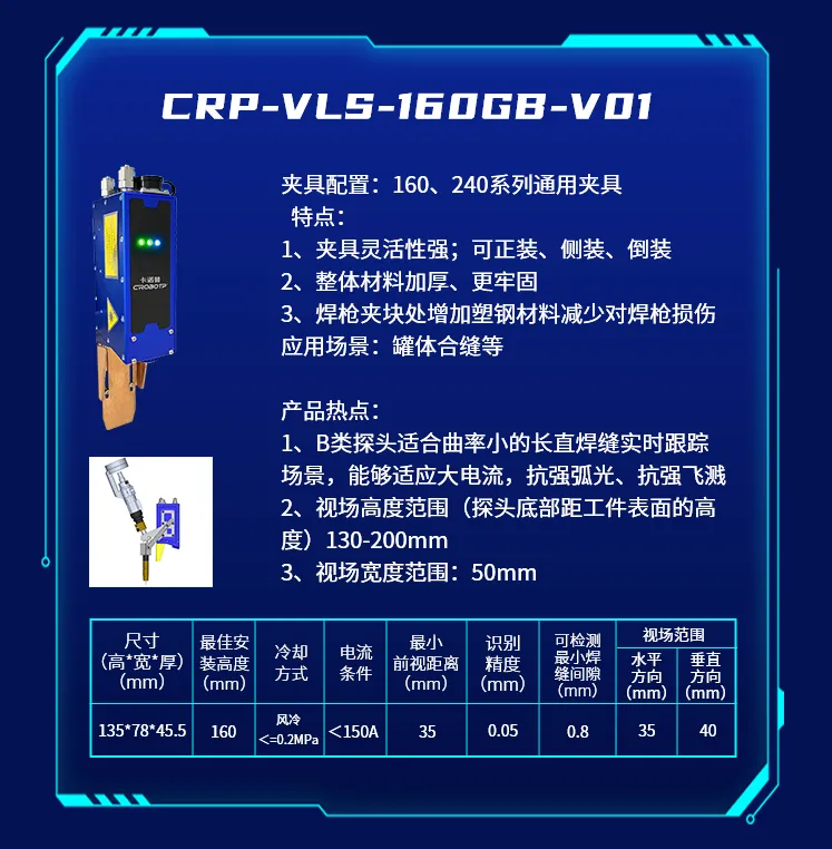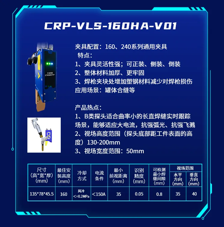 為了適應不同的焊接場景,推出了CRP-VLS-330GB-V01新款機型激光焊縫跟蹤器