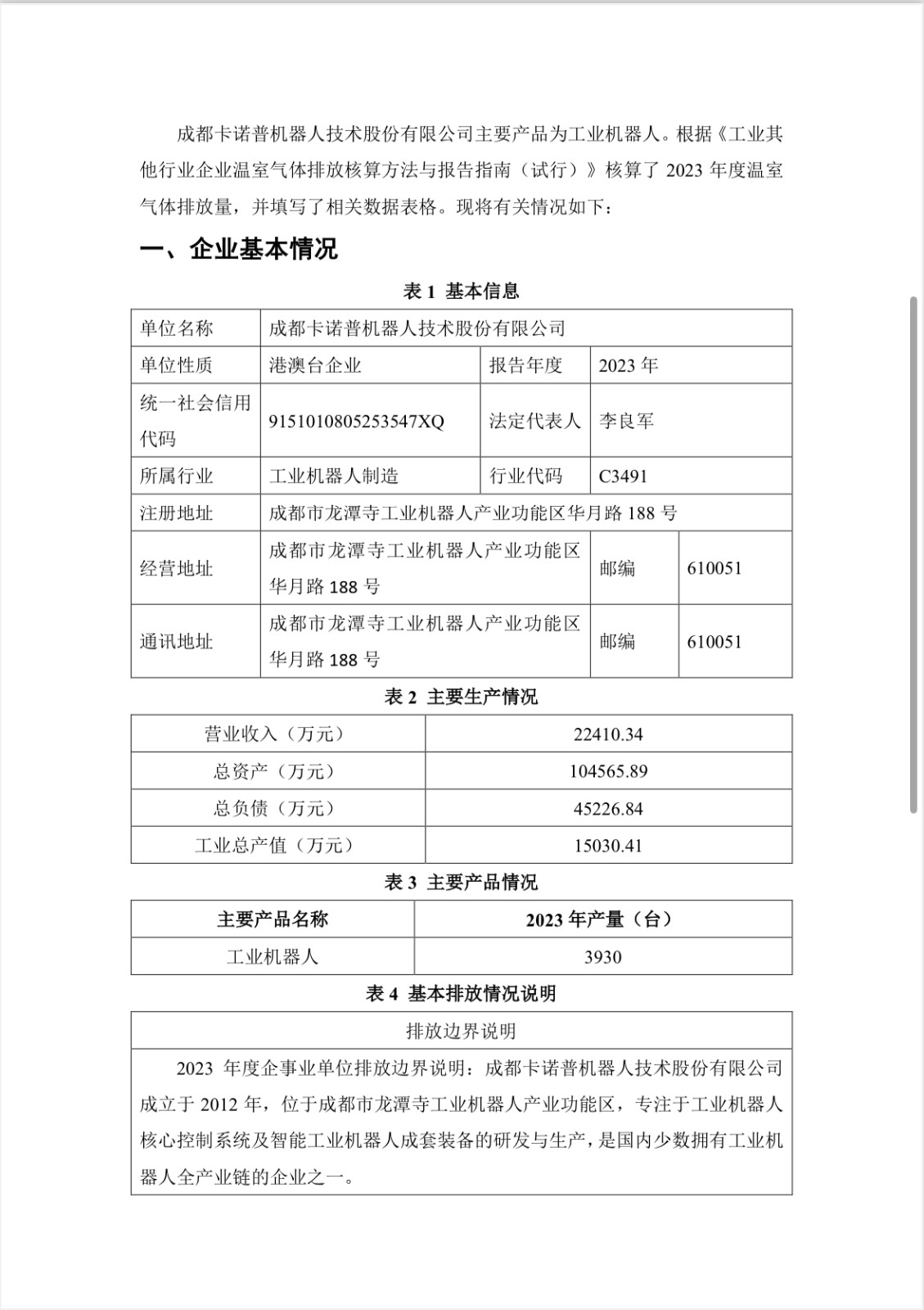 成都28圈電競機器人技術股份有限公司 2023 年度 溫室氣體排放報告