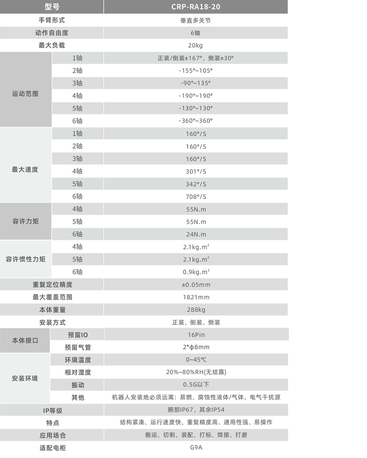 機器人整體結構高度緊湊、輕量化,更加輕巧適用,尤其腕部更加小巧,滿足更多的場景。