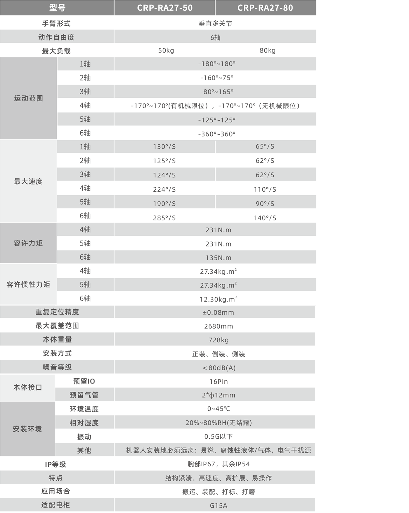 • 內置電纜、氣管,通過小臂和手腕中心處設置中空部分,從機器人基部到腕部末端內置電纜和氣管,更大地方便了用戶使用,提高了作業效率。