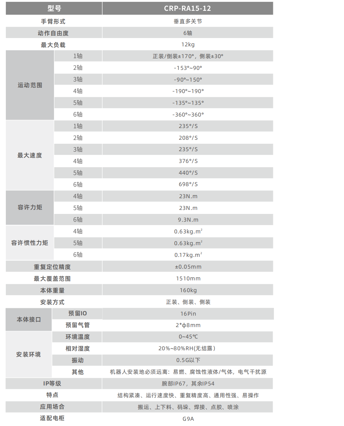 機器人整體結構高度緊湊、輕量化,更加輕巧適用,尤其腕部更加小巧,滿足更多的場景。